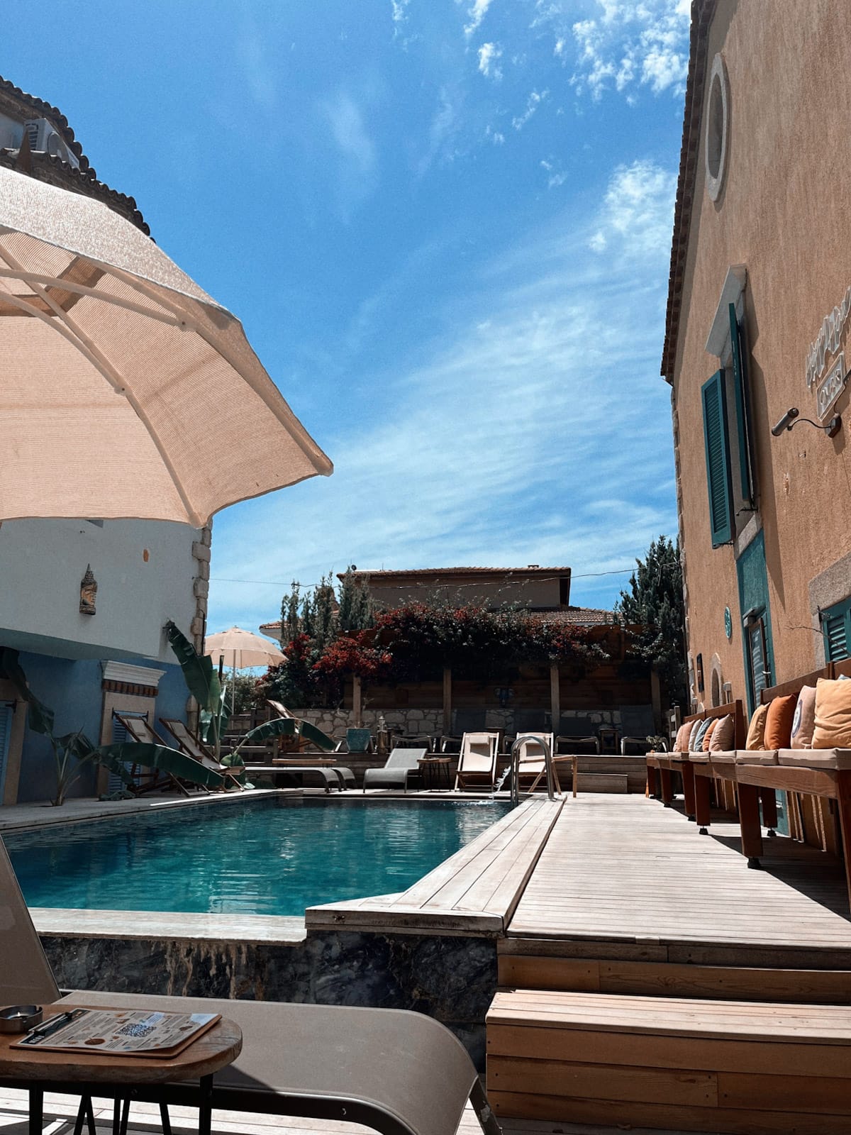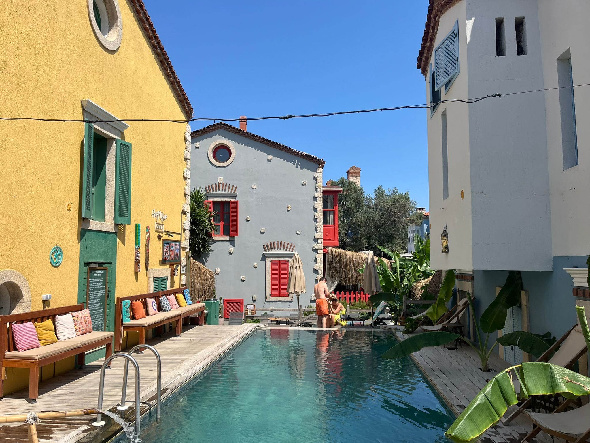 Banana Alacati Food and Stay has a relaxed atmosphere, great food with live music in the evenings, and a refreshing swimming pool.